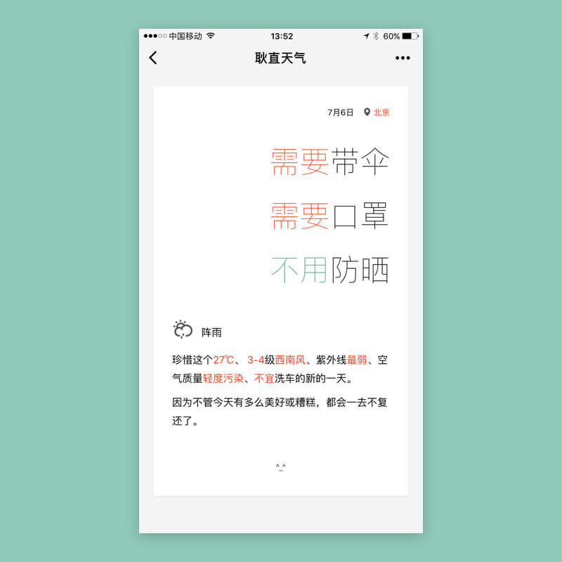 一个强调出行建议,而不是天气数据的应用。为了掌握小程序开发的练习项目,使用和风天气 API。设计和开发用时一周。